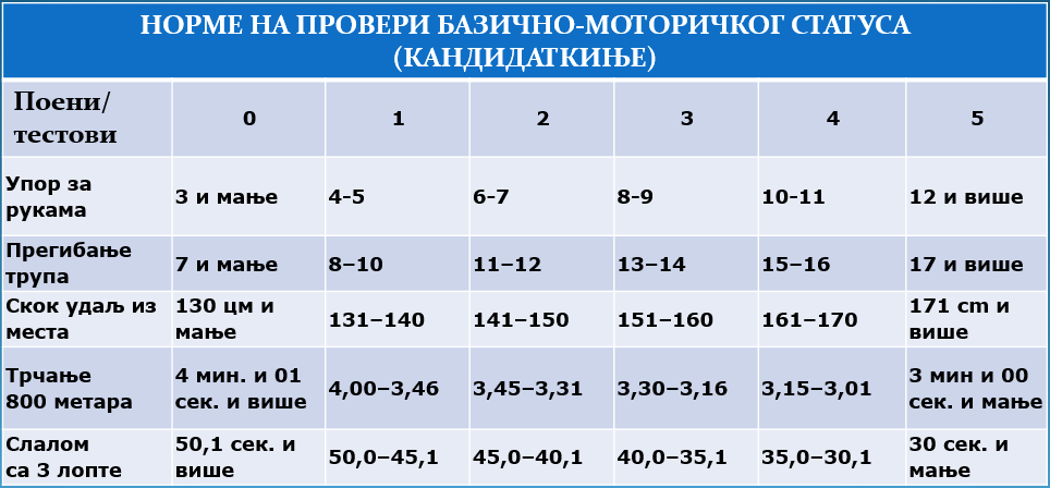 3. експлозивност у снази мишића доњих екстрeмитета (тест скок у даљ из места);